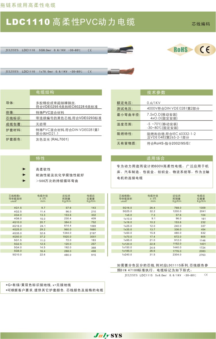 产品涵盖高柔性拖链电缆、超柔性拖链电缆、移动环境用伺服电缆、现场总线电缆、机器人电